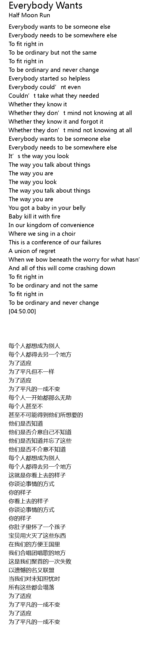 | [02:47.00] | Everybody wants to be someone else |