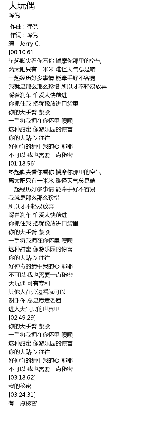 | [02:33.95] | 大玩偶 可有专利 |