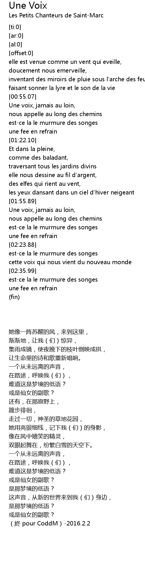 Une voix, jamais au loin, |