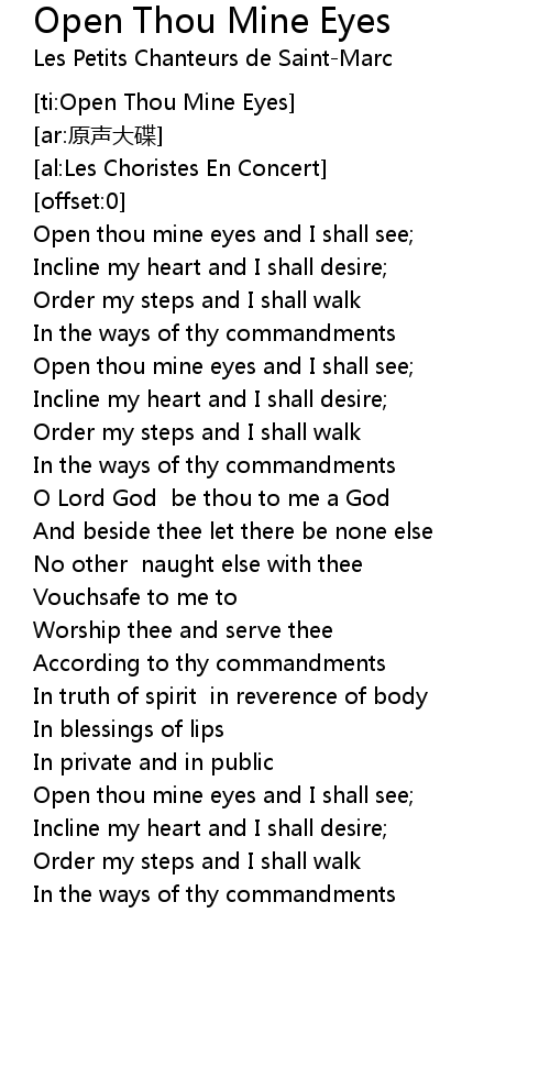 | [00:10.77] | Open thou mine eyes and I shall see; |