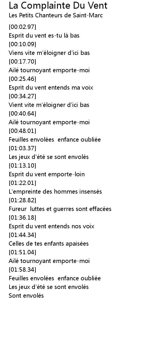 | [00:42.31] | Ailé tournoyant emporte-moi |