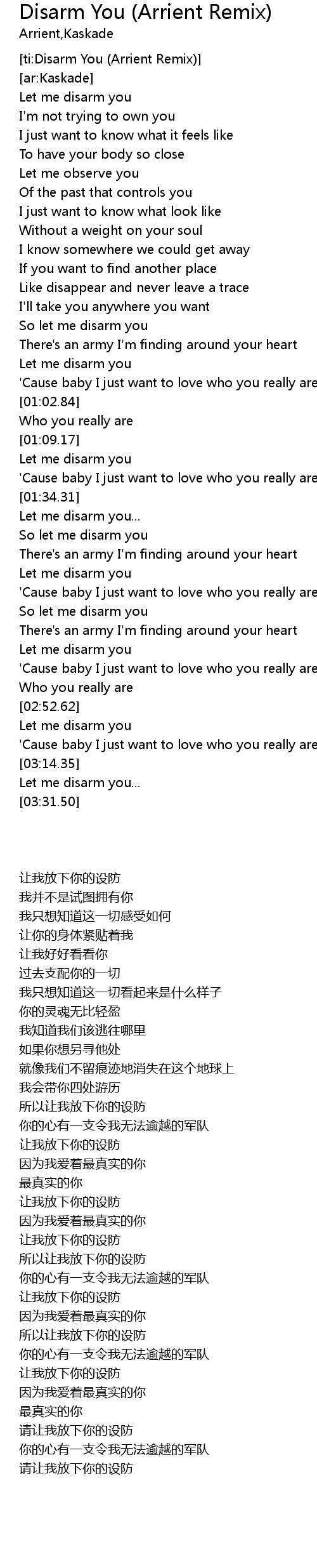 | [02:34.93] | Let me disarm you |