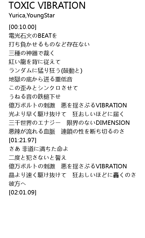 | [00:59.81] | 億万ボルトの刺激 悪を揺さぶるVIBRATION |