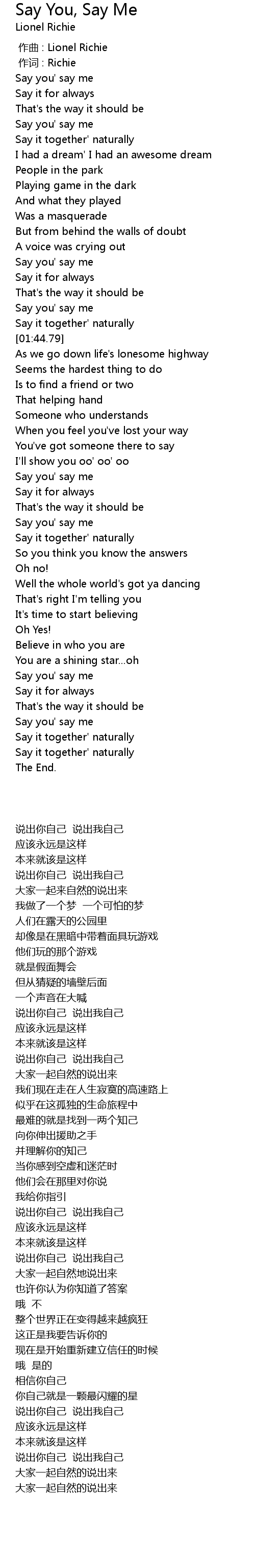 | [00:47.67] | Say you' say me |