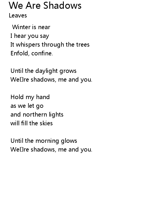 | We re shadows, me and you. | |