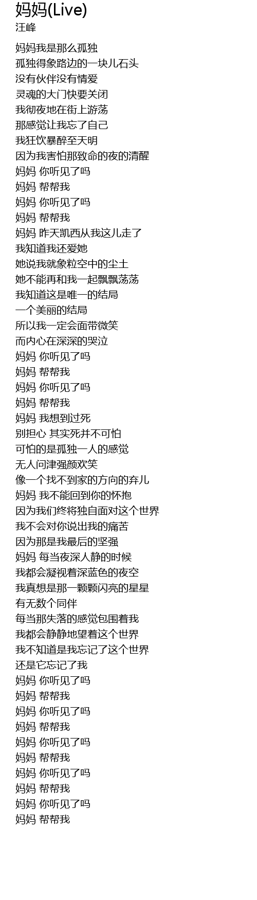 | [00:43.77] | 妈妈我是那么孤独 |