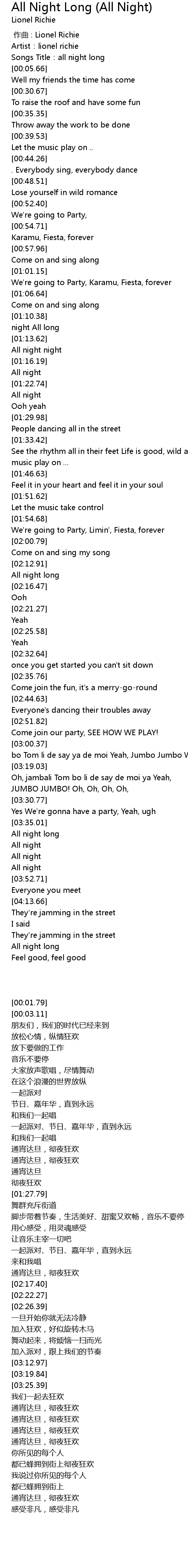 | [00:03.11] | Songs Title: all night long |