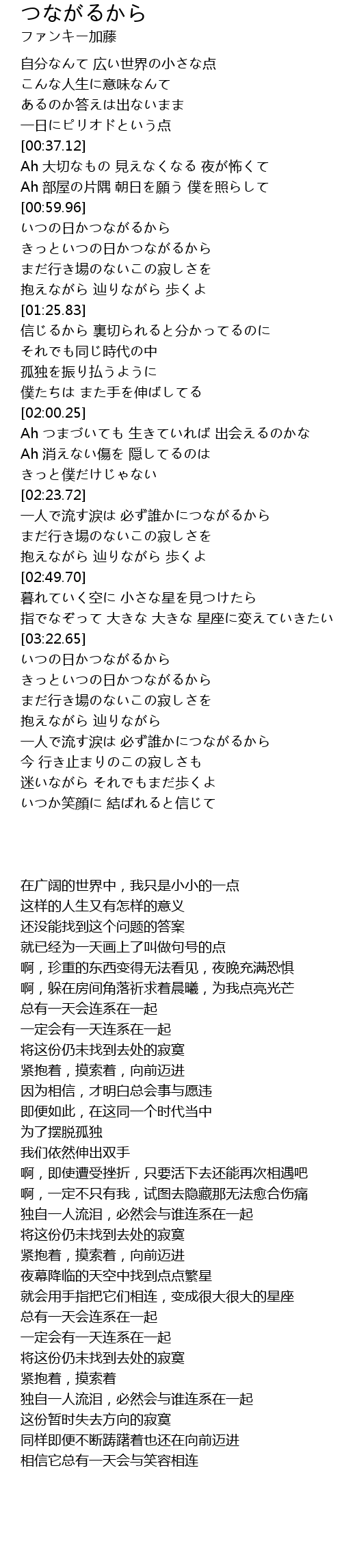 | [03:46.05] | 一人で流す涙は 必ず誰かにつながるから |