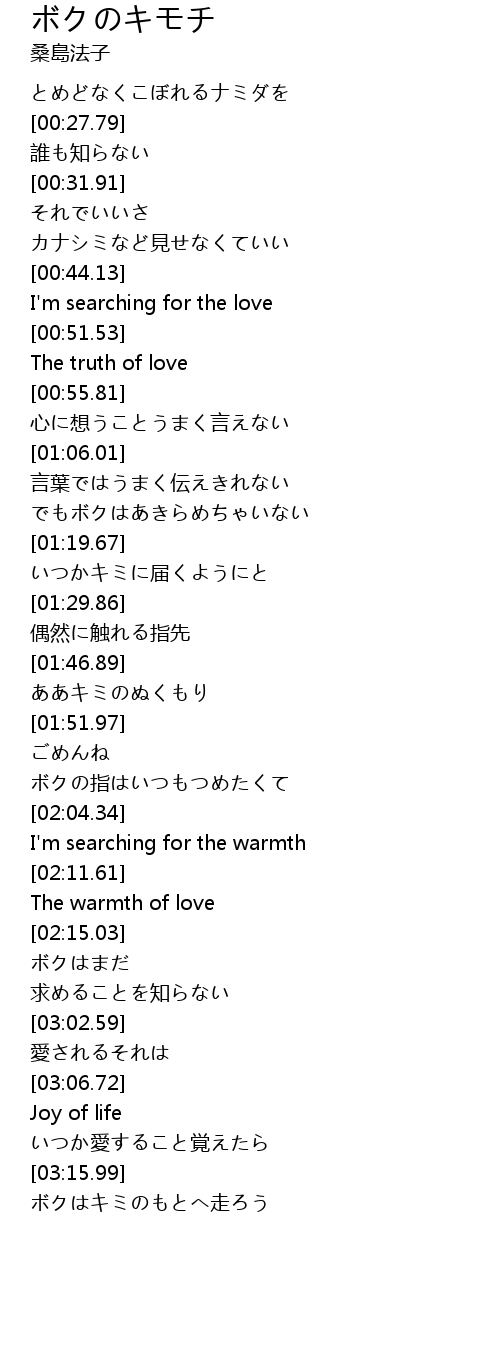 | [01:56.63] | ボクの指はいつもつめたくて |