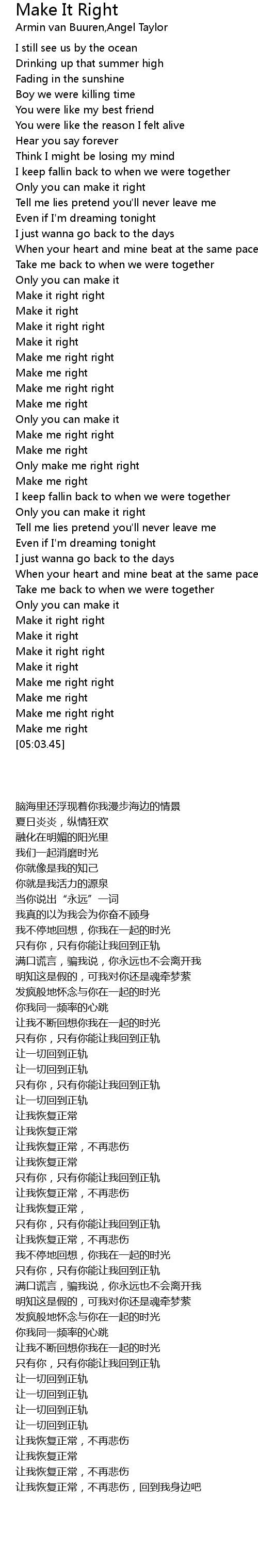 Only make me right right |