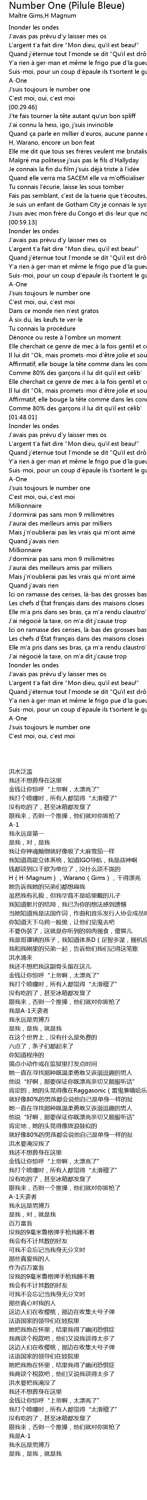 | [03:02.77] | J' suis toujours le number one |