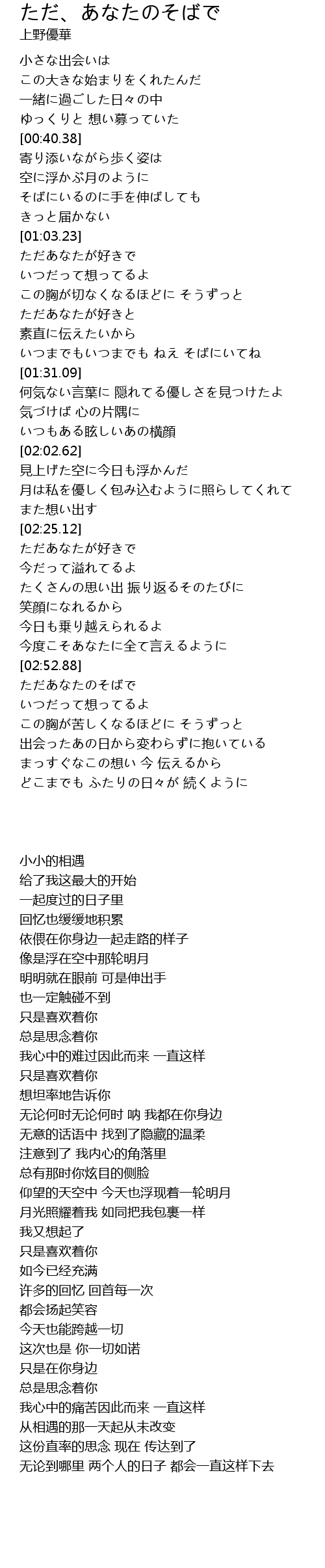 | [03:00.40] | ただあなたのそばで |