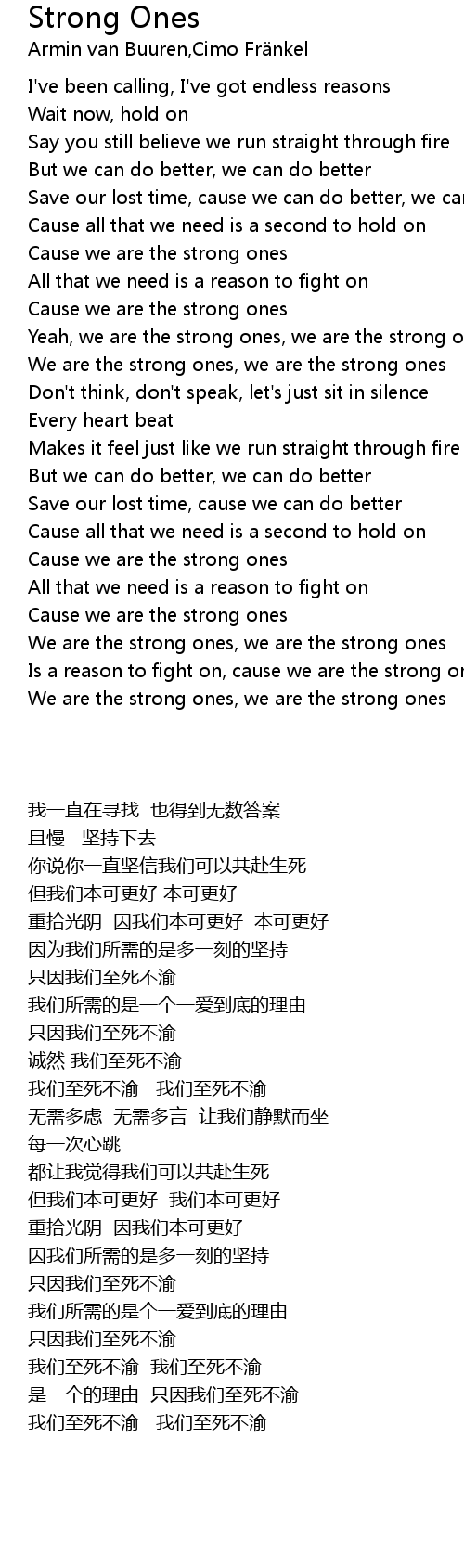 | [00:52] | Cause we are the strong ones |