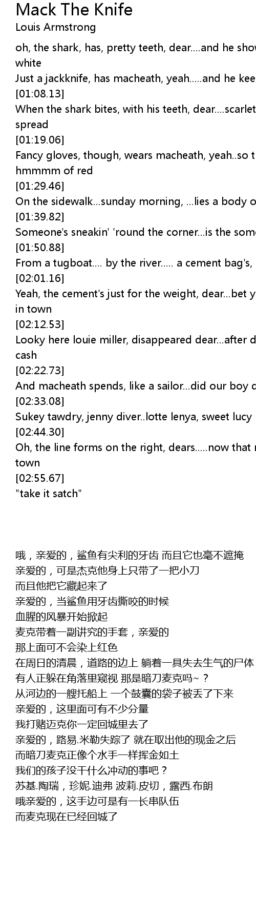 Just a jackknife, has macheath, yeah.....and he keeps it, out of sight |