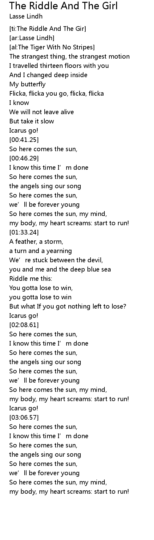 | [00:25.14] | Flicka, flicka you go, flicka, flicka |