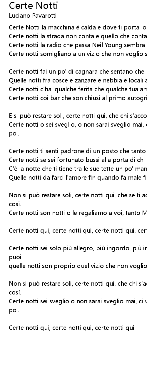 | Certe notti qui, certe notti qui, certe notti qui. |