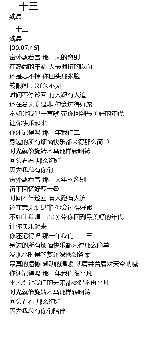 | [00:01.90] | 二十三 |