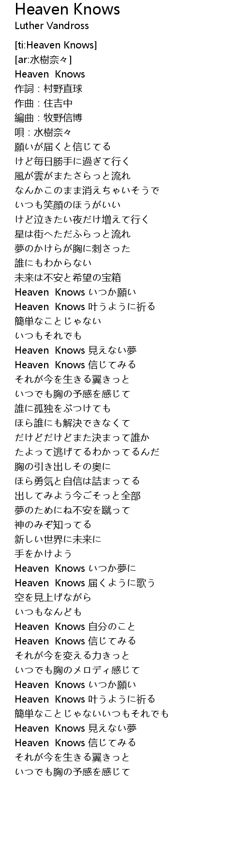 | [00:52.26] | Heaven Knows 見えない夢 |