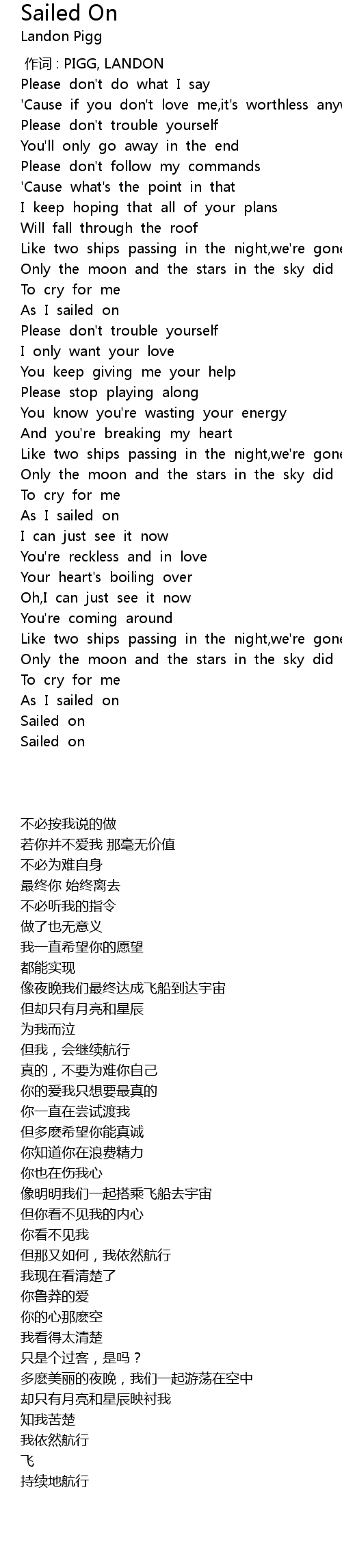 | [00:00.00] | 作词 : PIGG, LANDON |