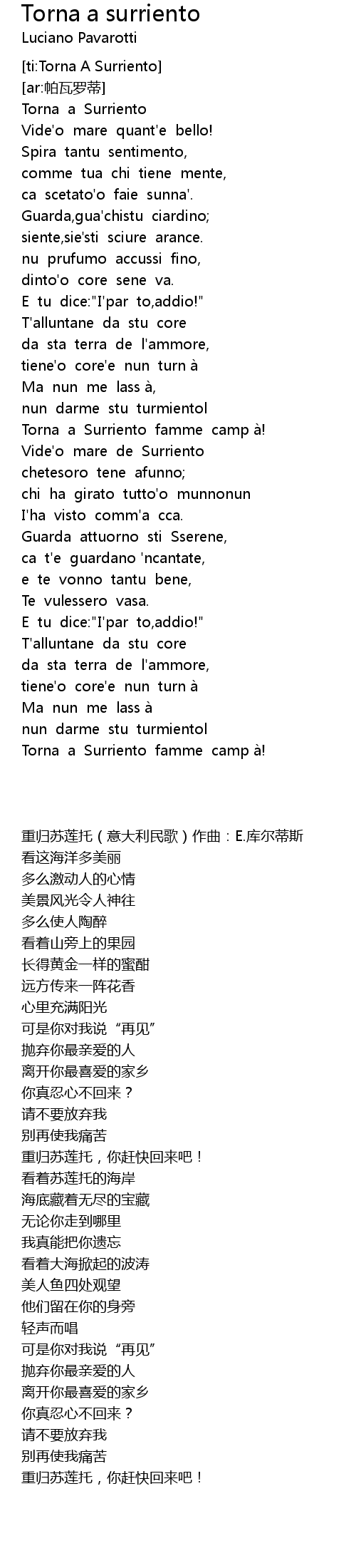 | [01:55.460] | Torna a Surriento famme camp a! |