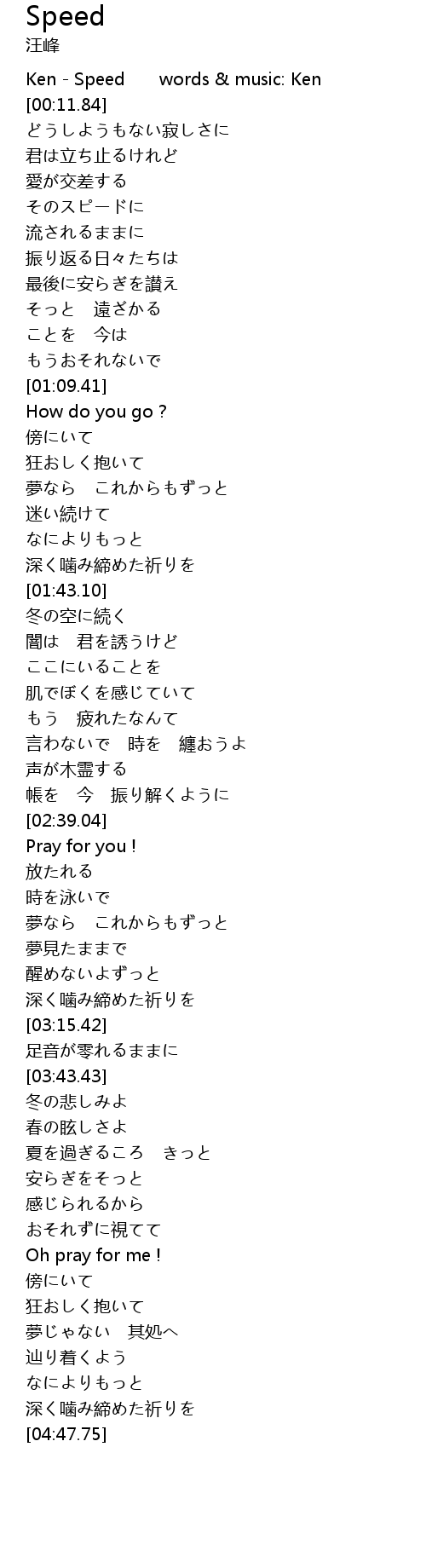 | [00:00.00] | Ken - Speed words & music: Ken |