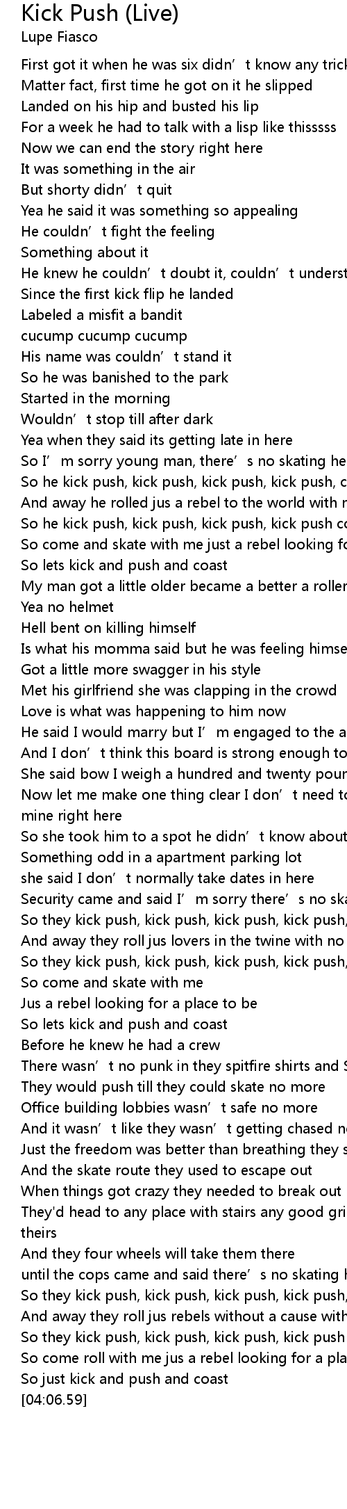 | [03:38.54] | So they kick push, kick push, kick push, kick push, coast |