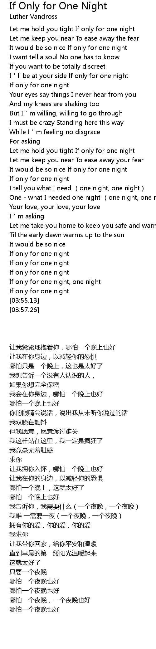 | [03:38.82] | If only for one night, one night |
