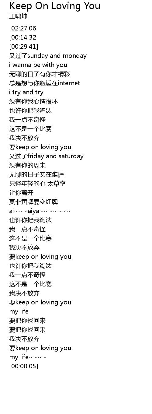 | [02:15.06] | 要keep on loving you |