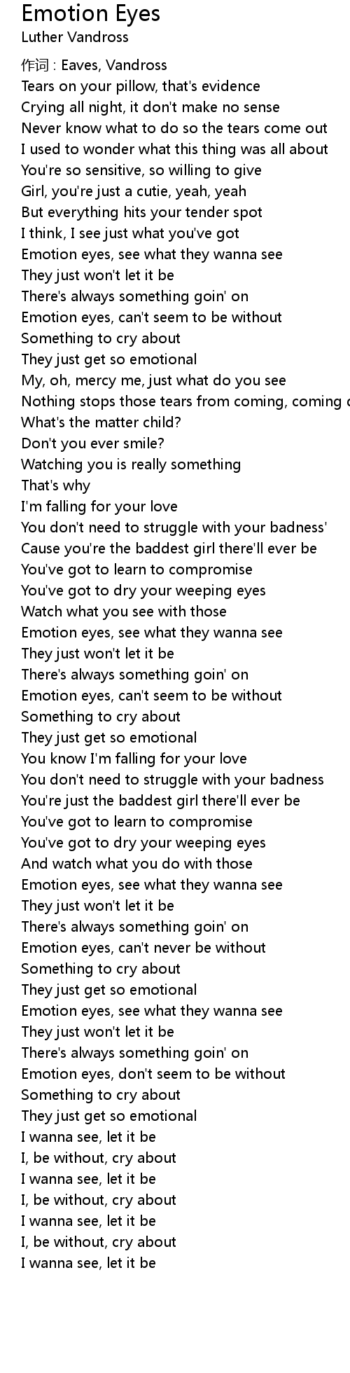 | Emotion eyes, can't seem to be without | |