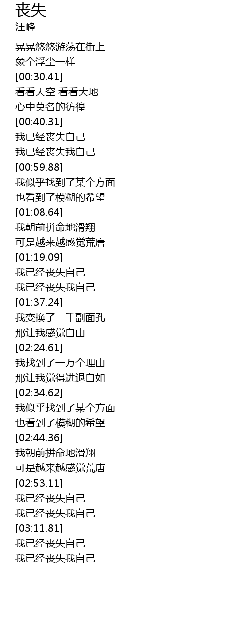 | [00:41.77] | wǒ yǐ jīng sàng shī zì jǐ |