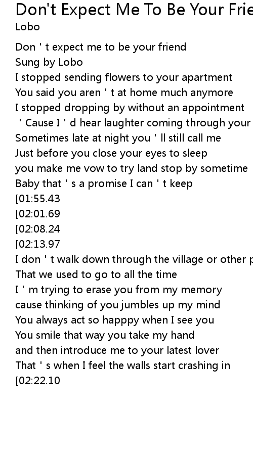 | [03:17.63][02:13.97][01:20.05] | So don t expect me to be your friend |