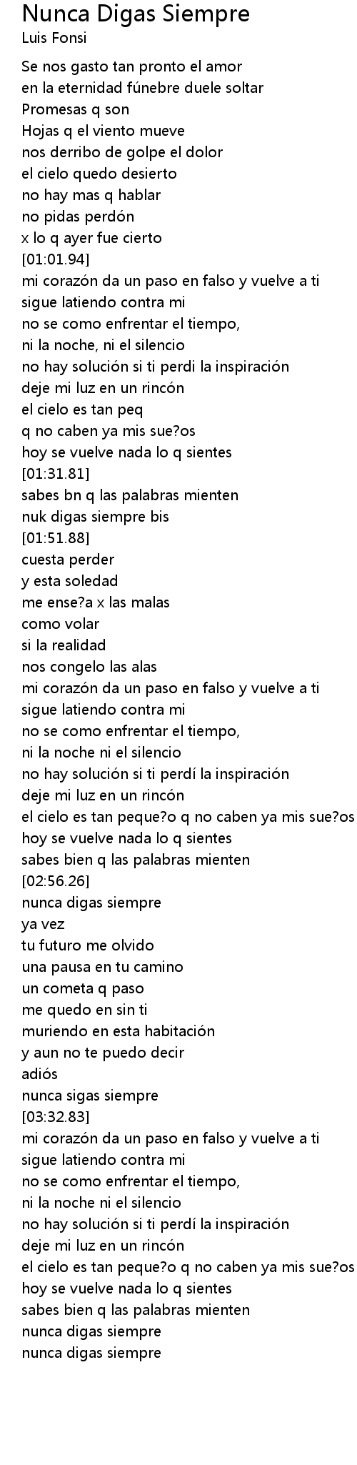 | [04:18.64] | nunca digas siempre |
