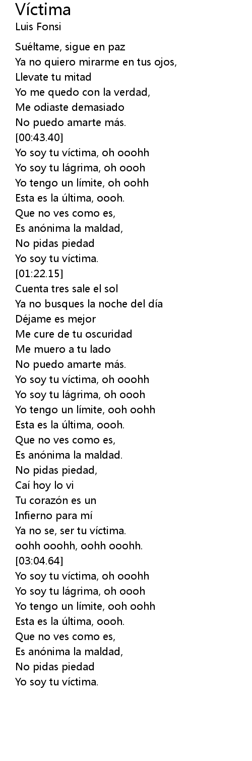 | [00:44.46] | Yo soy tu vi ctima, oh ooohh |