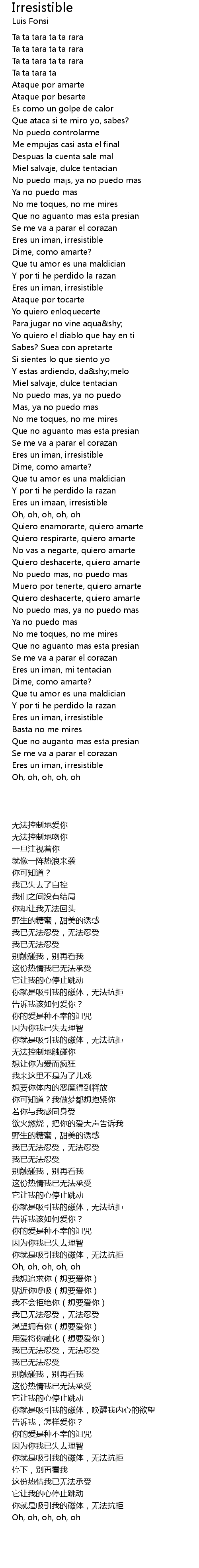 | Song | Irresistible |