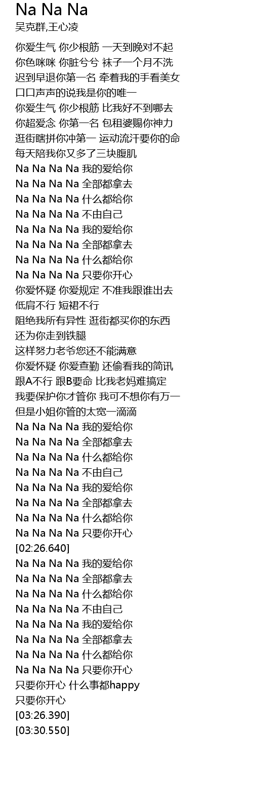 | [03:06.670] | Na Na Na Na 只要你开心 |