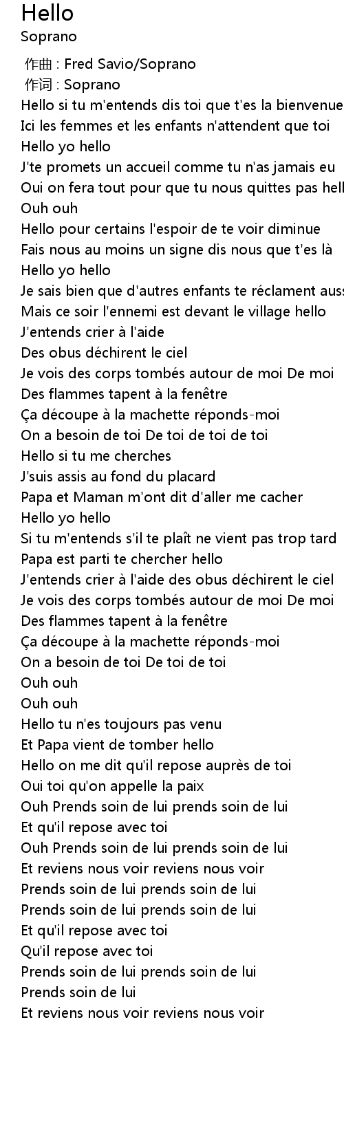 | [02:35.94] | Hello on me dit qu' il repose auprè s de toi |