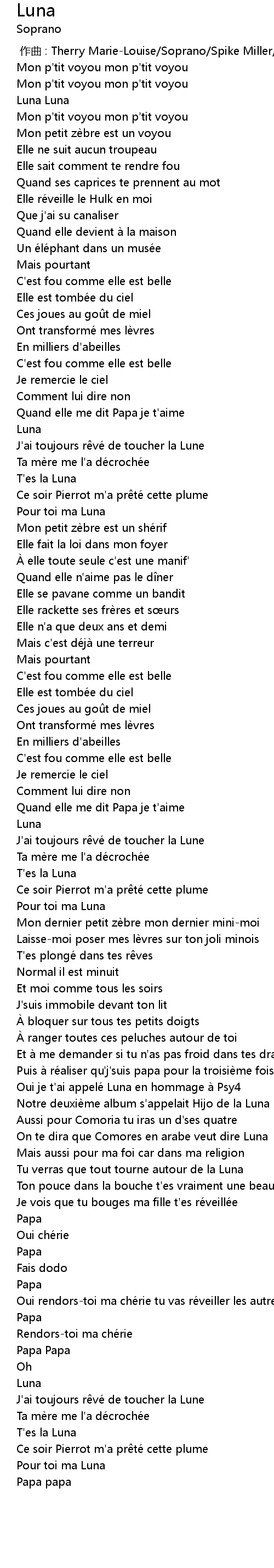 | [02:46.11] | Oui je t' ai appele Luna en hommage a Psy4 |
