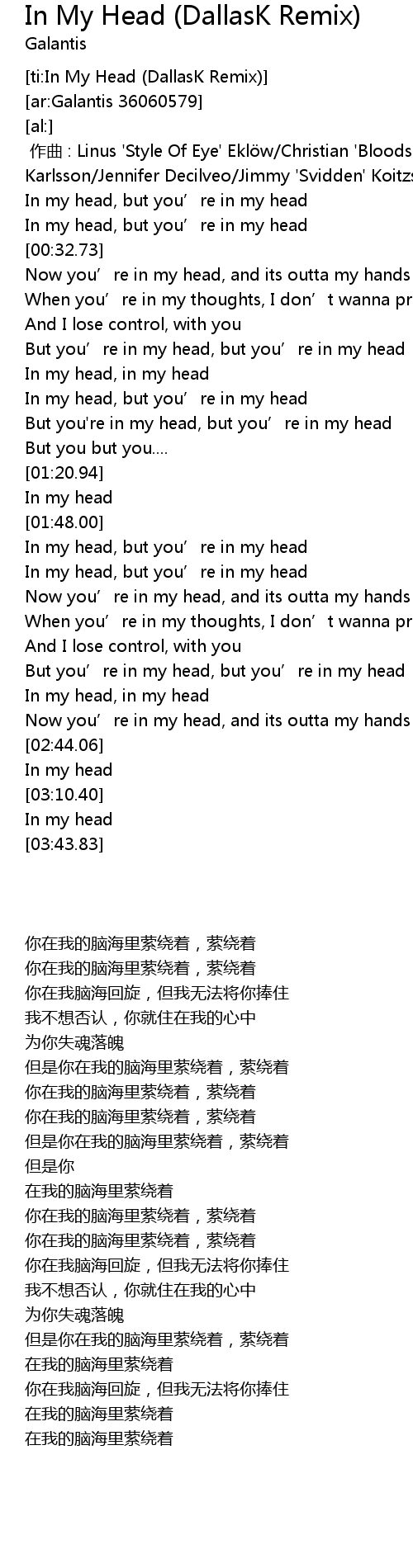 | [ti:In My Head (DallasK Remix)] | |