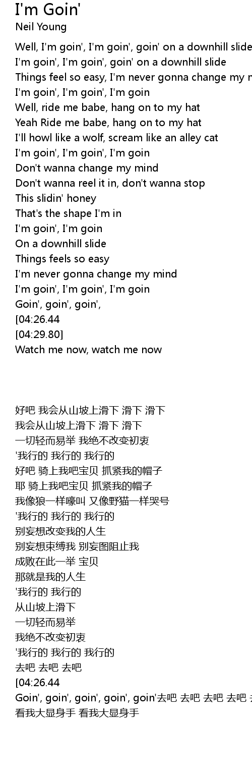 Well, I'm goin', I'm goin', goin' on a downhill slide |