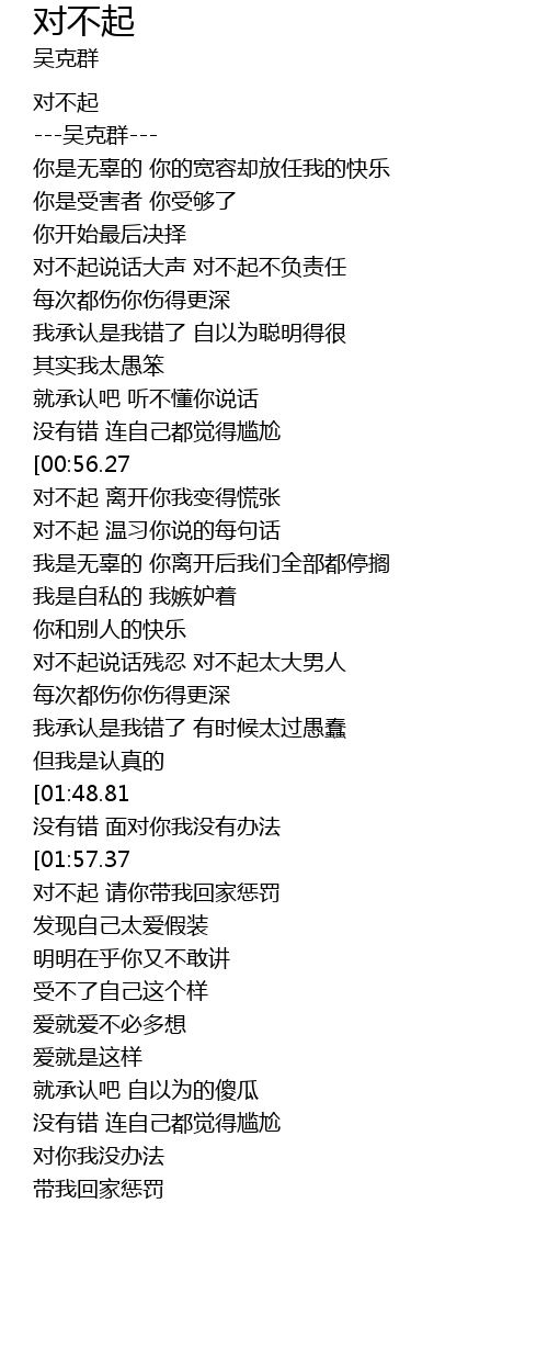 | [00:59.96] | 对不起 温习你说的每句话 |