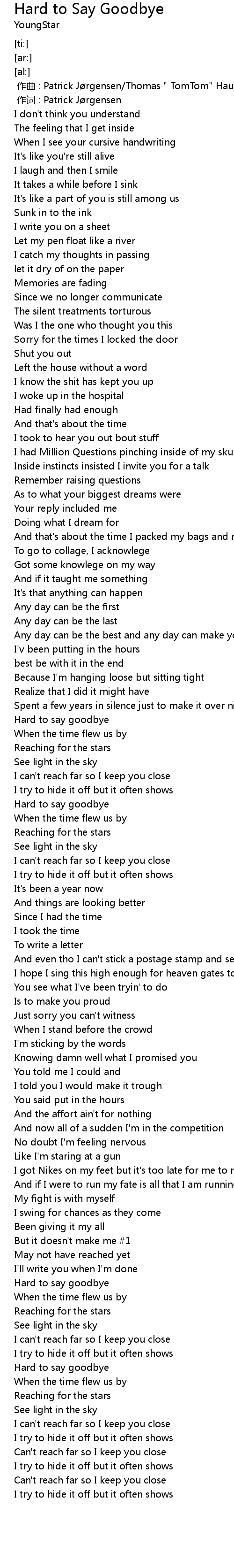 | [02:35.89] | Hard to say goodbye |