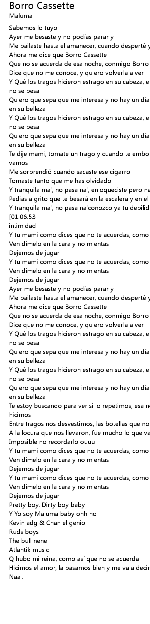 | [01:42.00] | Que no se acuerda de esa noche, conmigo Borro Cassette |