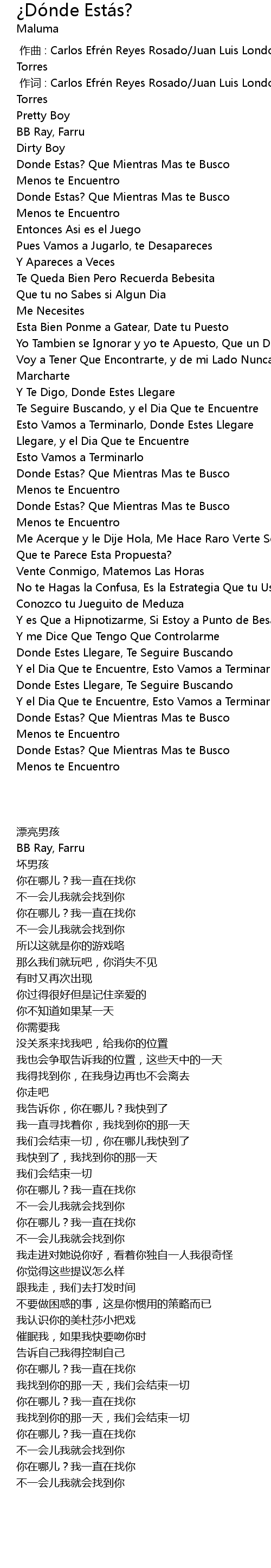 | [00:00.10] | 作词 : Carlos Efrén Reyes Rosado/Juan Luis Londoño Arias/Sharo Torres |
