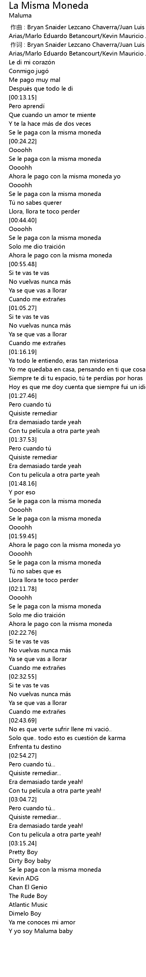 | [03:34.77] | Y yo soy Maluma baby |