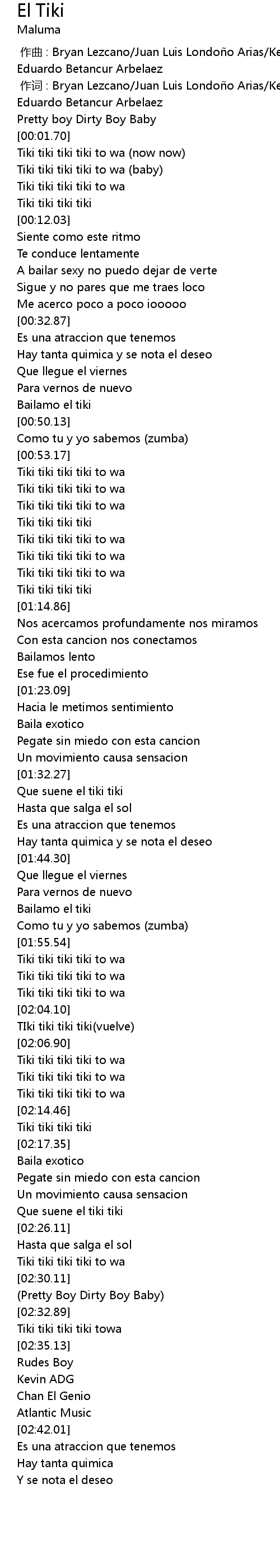 | [02:04.50] | TIki tiki tiki tiki(vuelve) |
