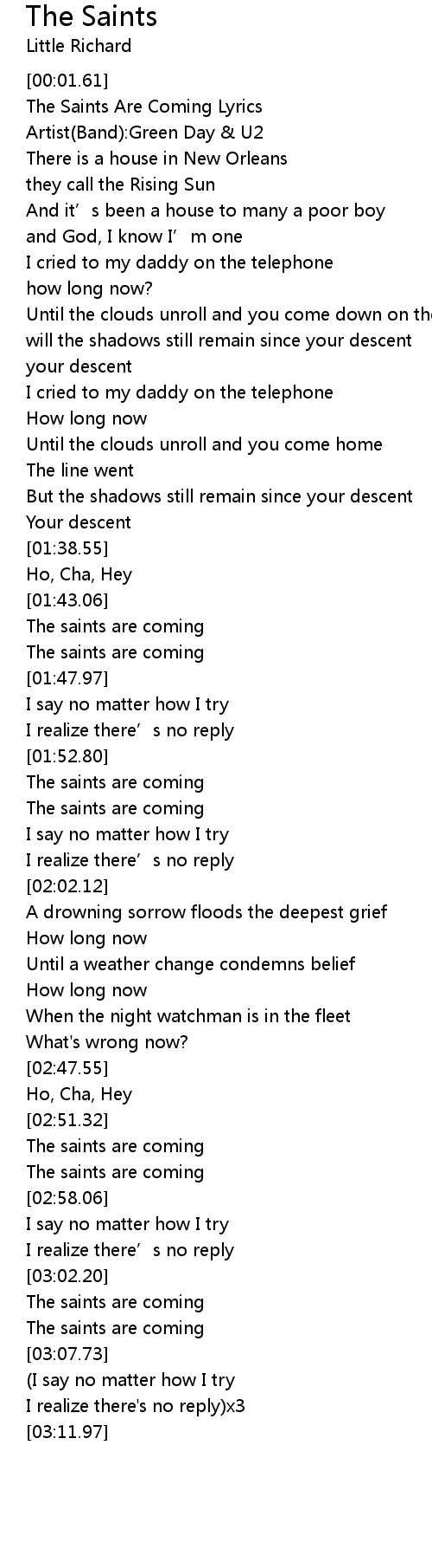 | [02:53.00] | The saints are coming |