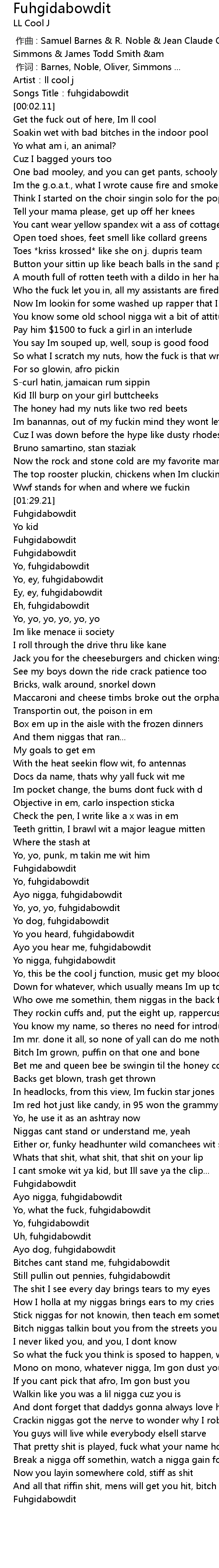 | [02:47.35] | Yo nigga, fuhgidabowdit |