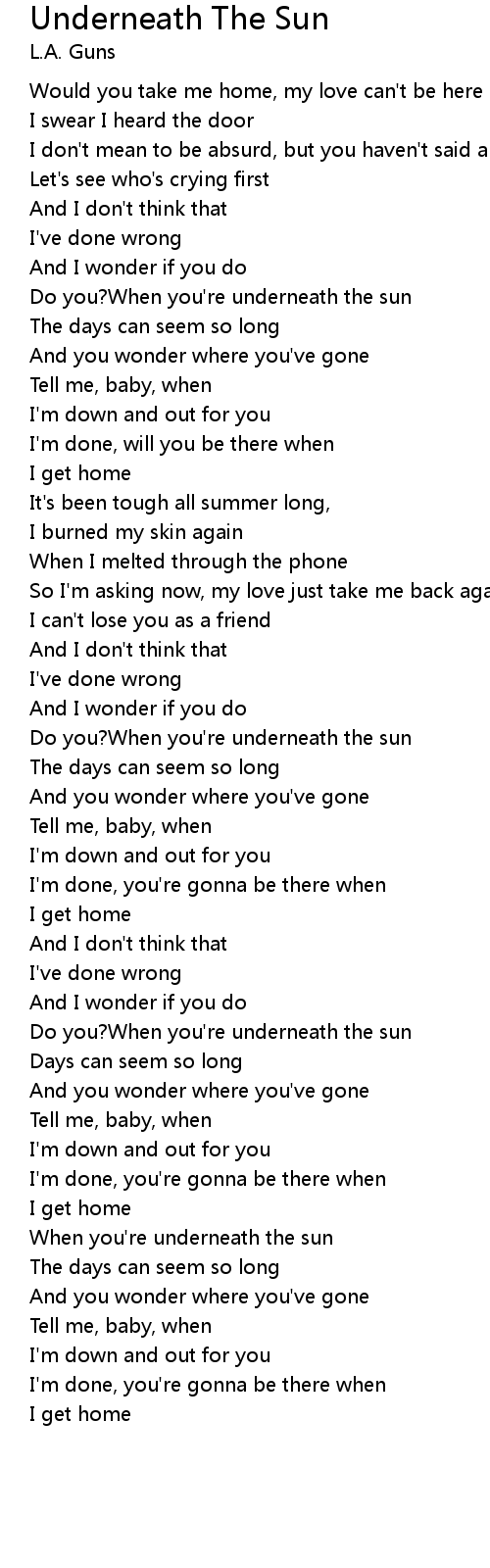 Do you?When you're underneath the sun |