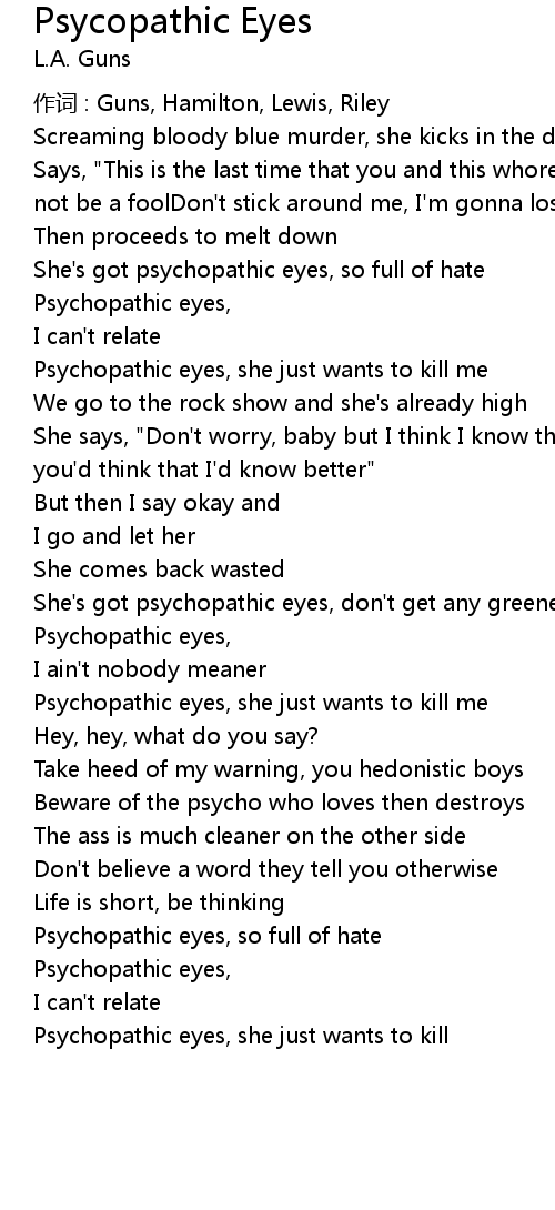 | Psychopathic eyes, she just wants to kill |