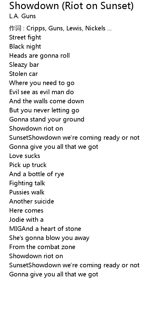 | Song | Showdown (Riot on Sunset) |